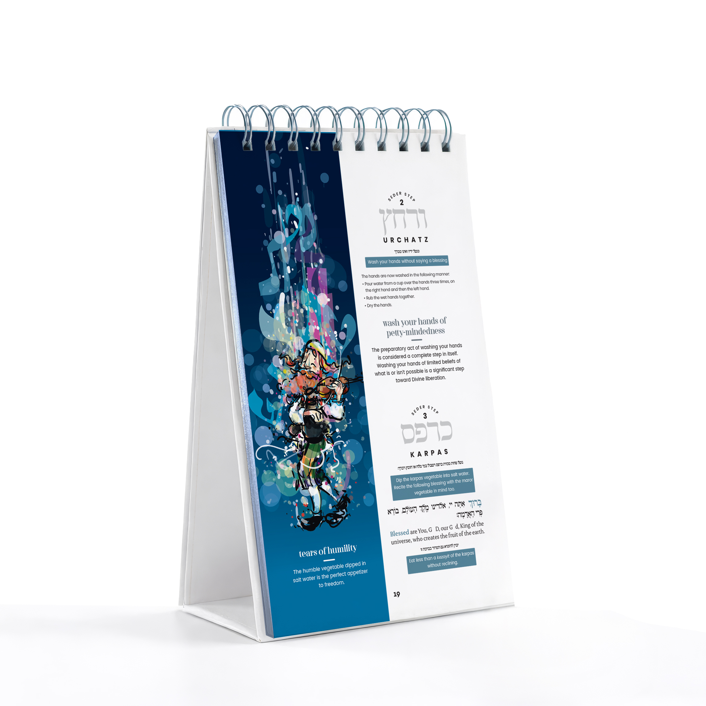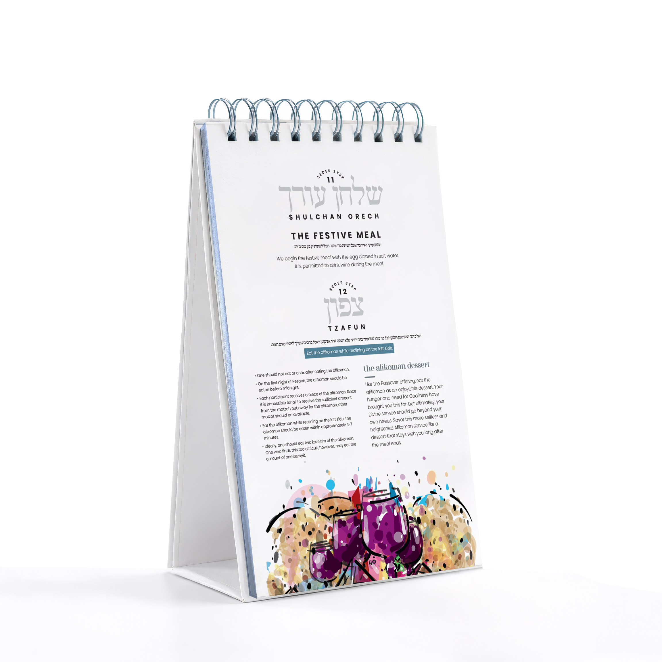The Story of Your Freedom Passover Haggadah recounts the ancient Exodus and today also serves as a roadmap to your own personal freedom. Discover insights drawn from the Rebbe’s timeless teachings that will illuminate and guide your journey. Original art by Yehuda Lang fuses vibrant color with Chasidic depth. A self-standing design and practical step-by-step guidance makes the Haggadah intuitive and easy to use.